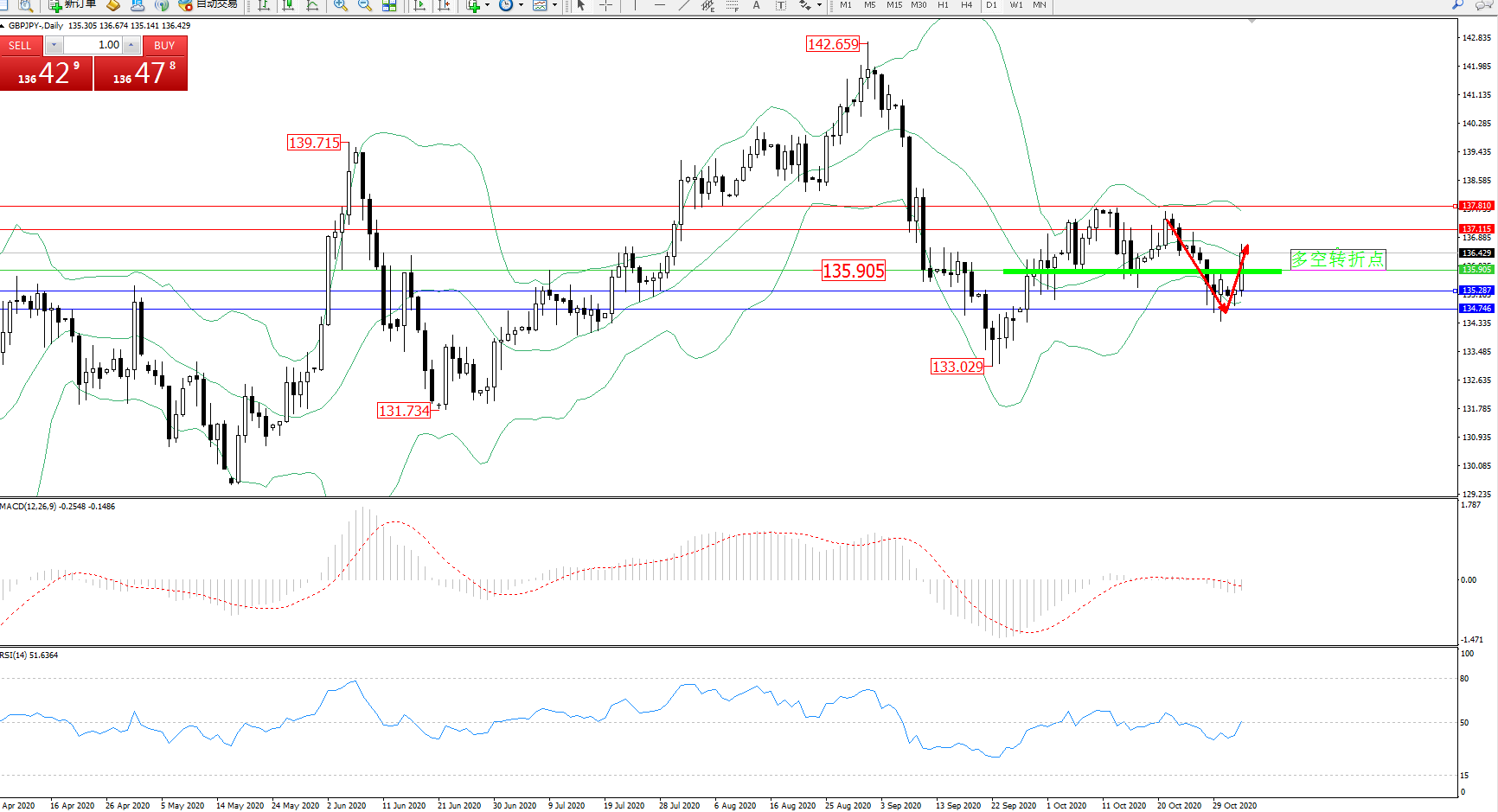 多空转折点:135.905