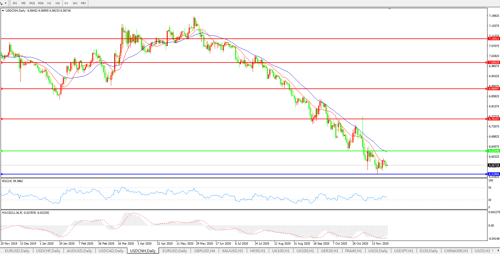 交易策略: 在6.6265之下,看跌,目标价位为6.5286,然后为6.3500。