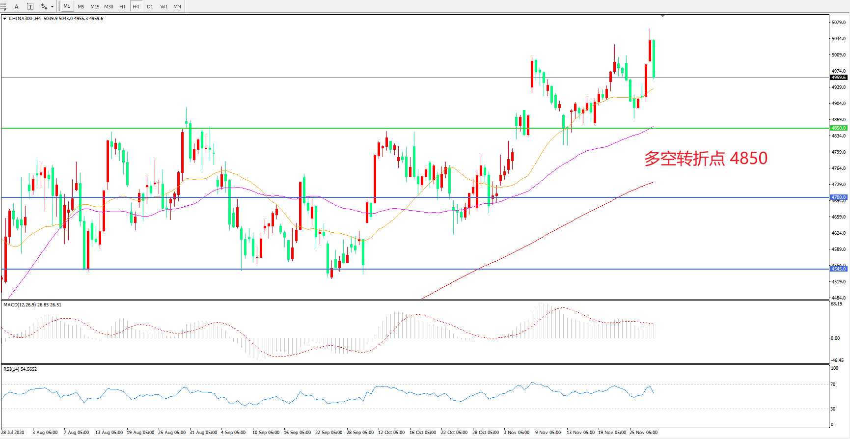 多空转折点:4850.00