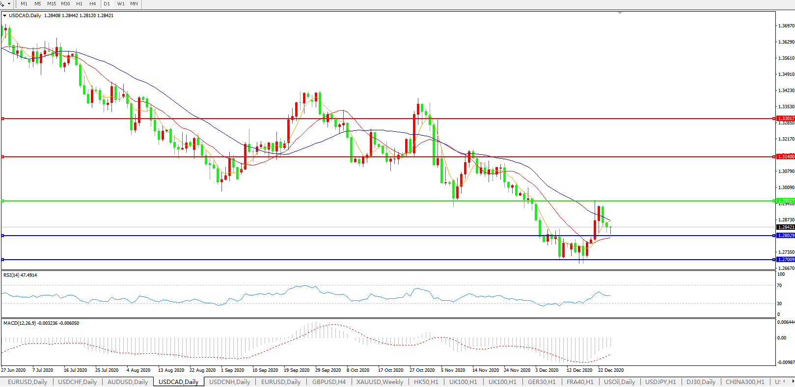 美元兑加元USDCAD    日线图:
