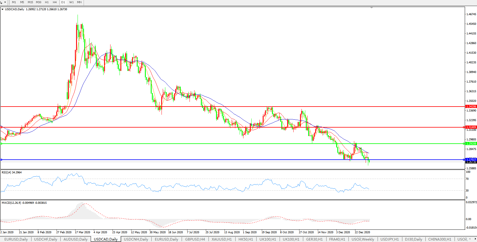 美元兑加元USDCAD    日线图: