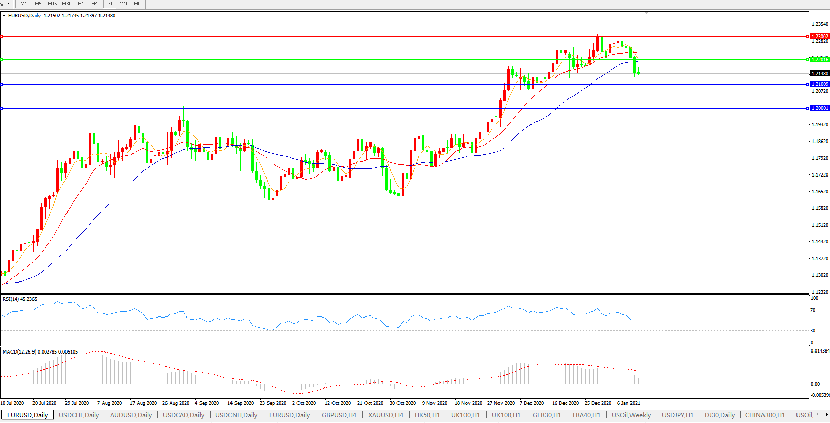 欧元兑美元EURUSD 日线图: