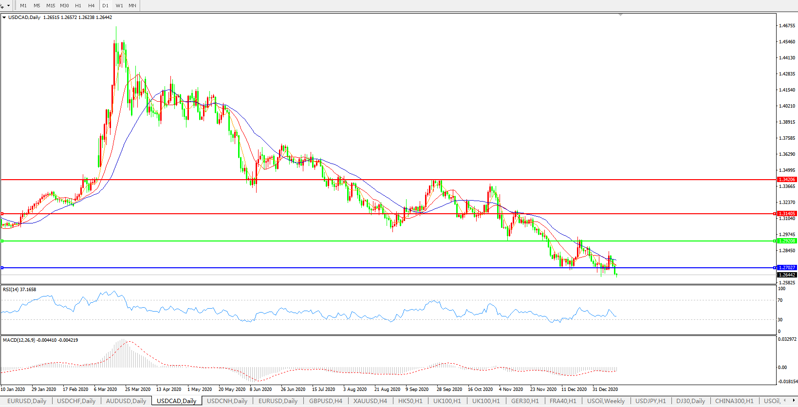 美元兑加元USDCAD 日线图:
