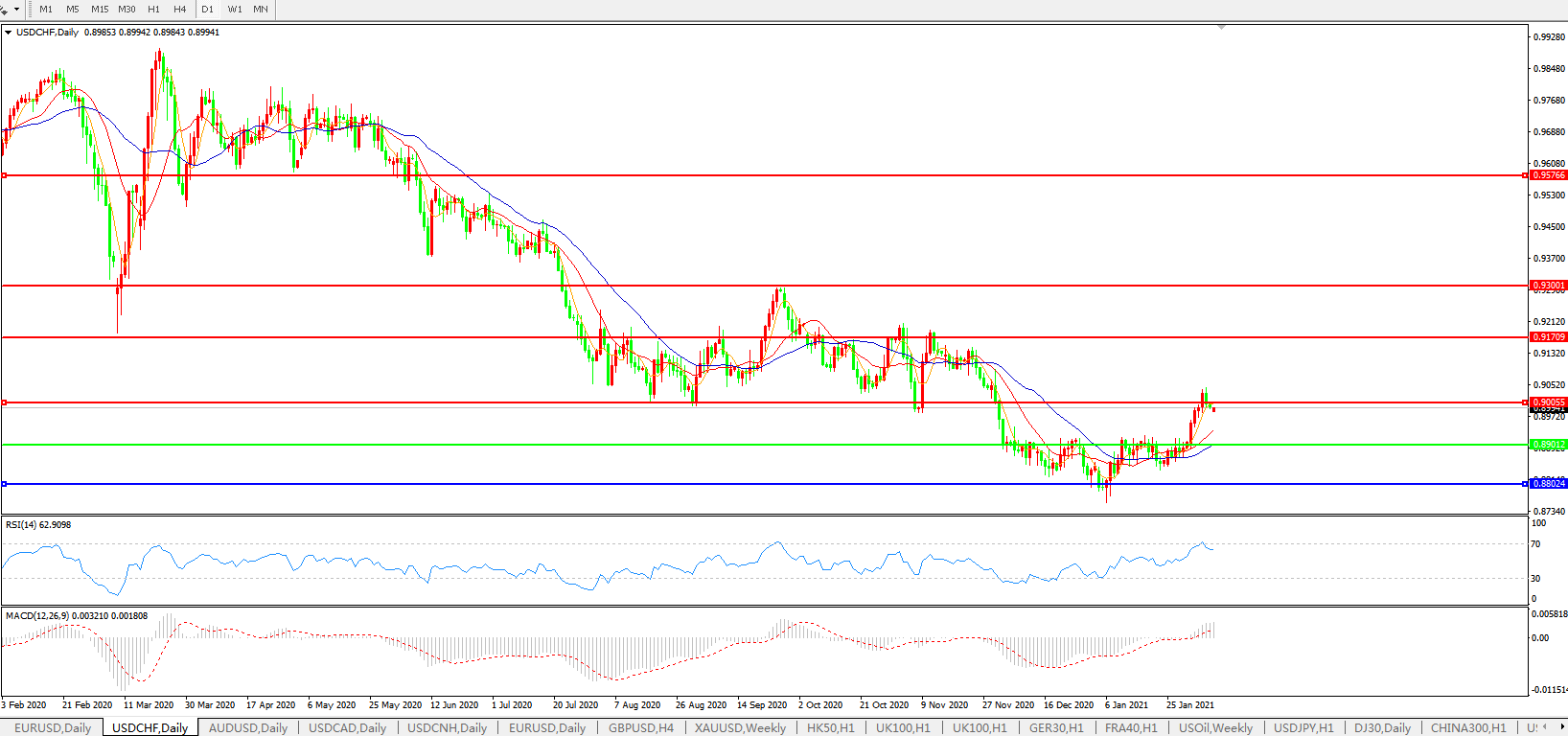 美元兑瑞郎USDCHF 日线图: