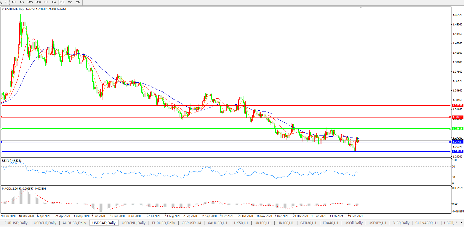 美元兑加元USDCAD 日线图: