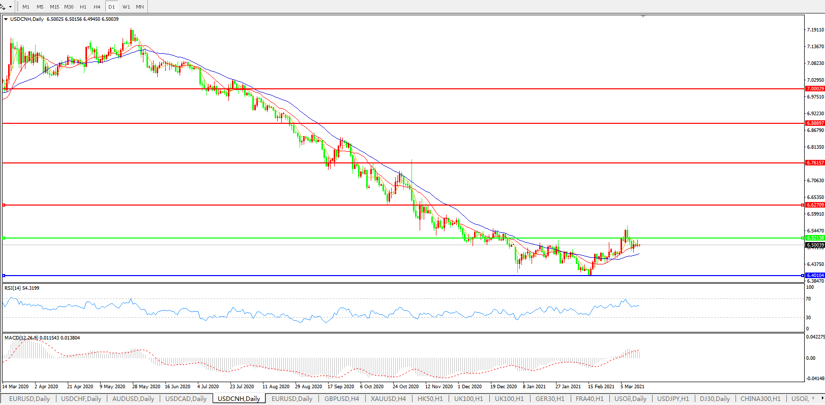 备选策略: 在6.5200之上,看涨,目标价位为6.6300,然后为6.7615。