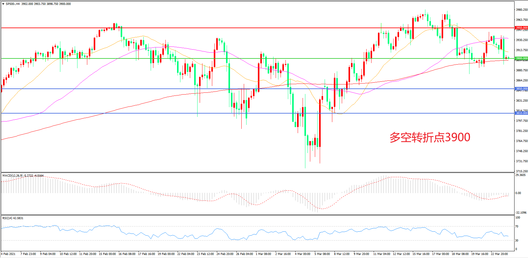 周二(3月23日),欧盟最大经济体德国宣布延长封锁期,复活节期间实行迄今最严厉的封锁措施,市场担心新的防疫封锁和疫苗推广缓慢,风险情绪明显回落,标普500震荡下行,收报3900点。大型科技股相对抗跌,只有Facebook跌近1%,奈飞涨超2%,亚马逊涨近0.9%。