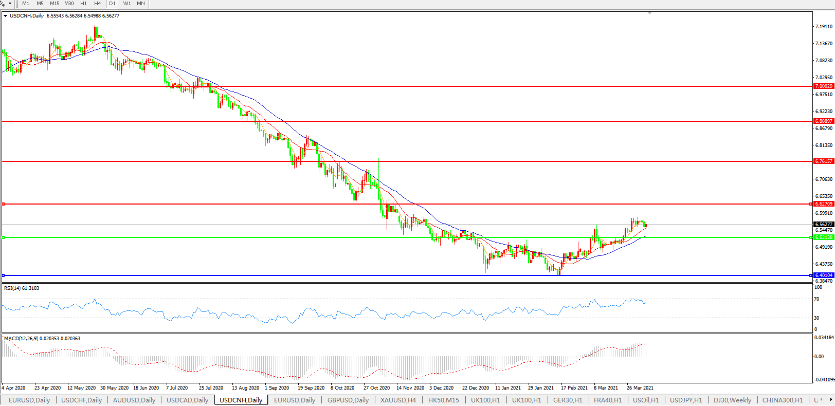 交易策略: 在6.5200之上,看涨,目标价位为6.6300,然后为6.7615。