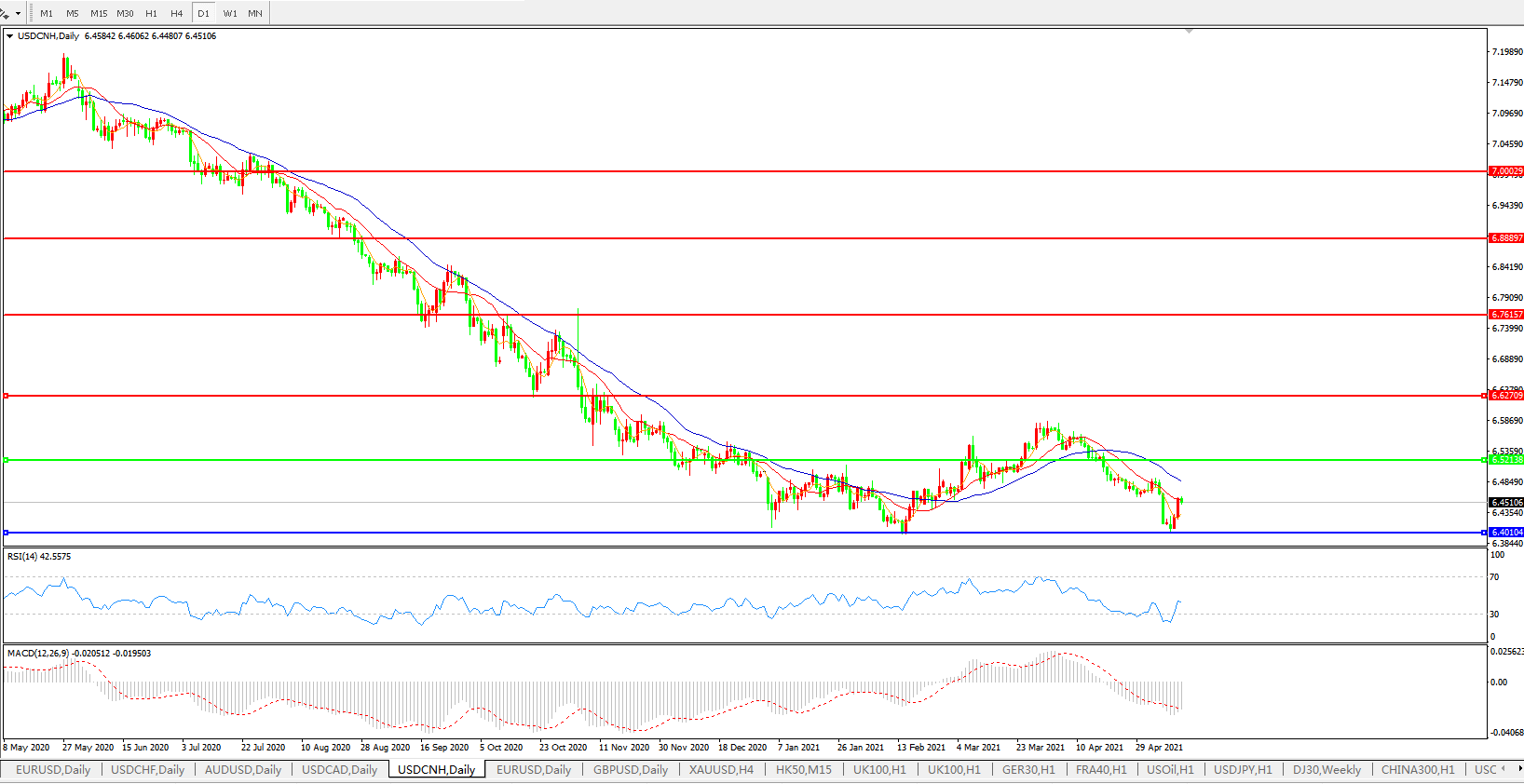 备选策略: 在6.5200之上,看涨,目标价位为6.6270,然后为6.7615。