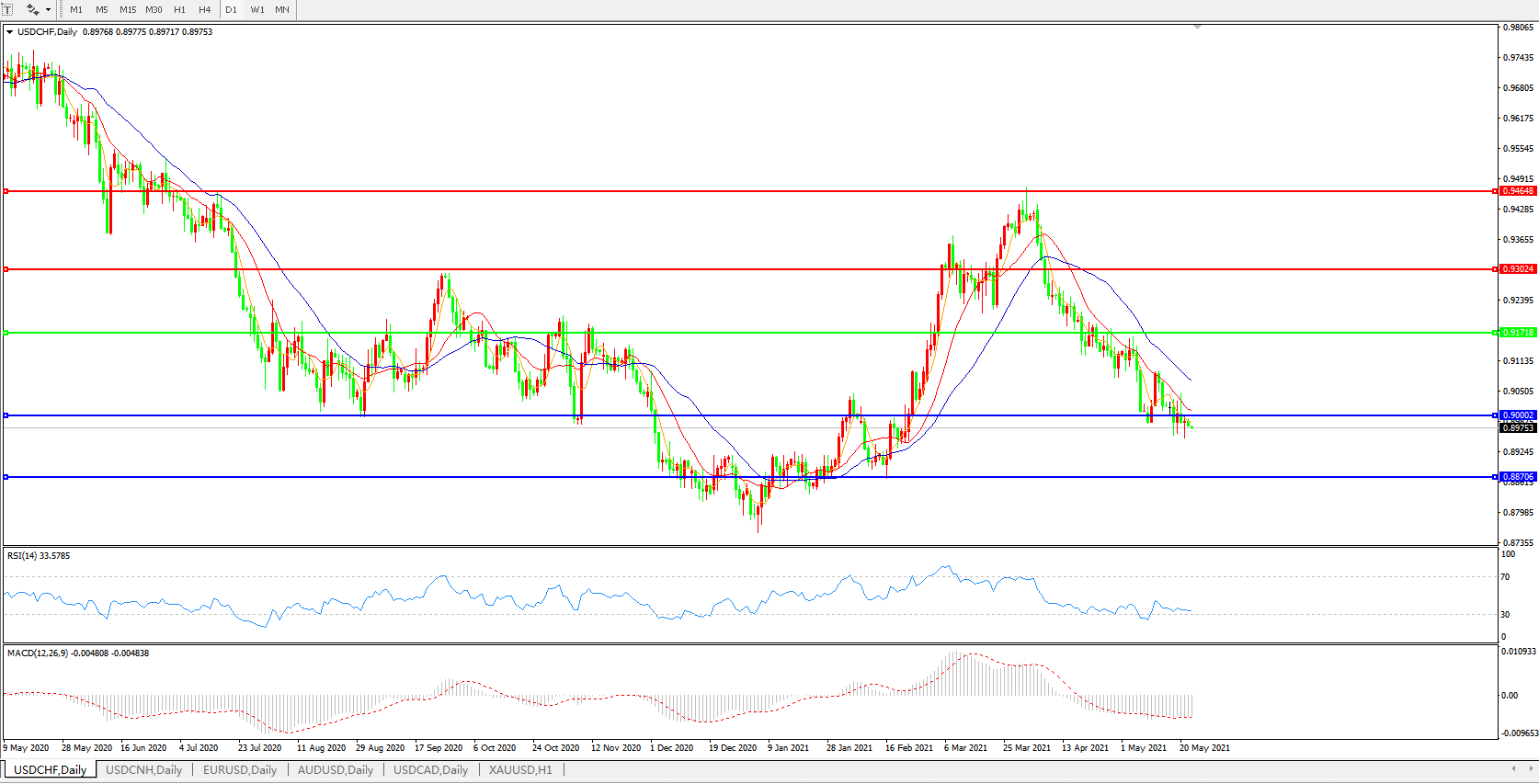 美元兑瑞郎USDCHF 日线图: