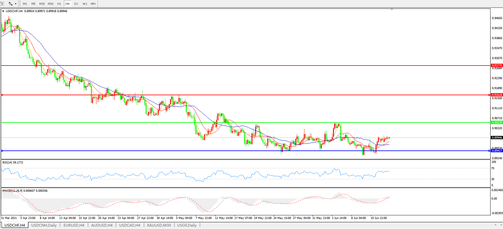 美元兑瑞郎USDCHF 4小时图: