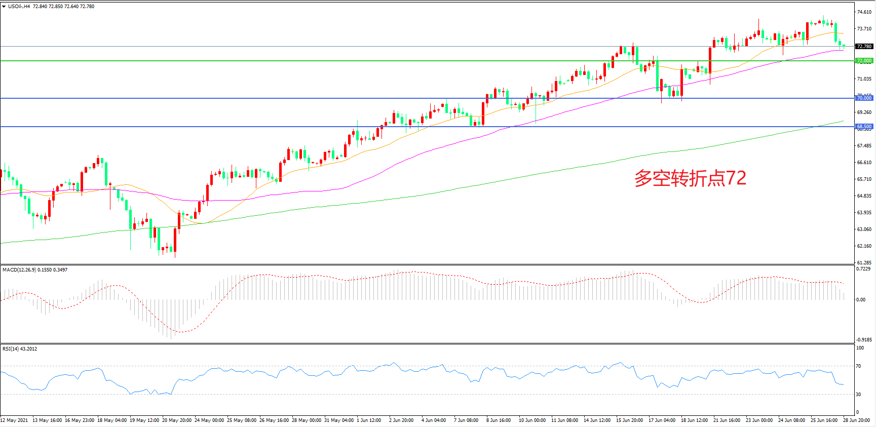 多空转折点:72.00