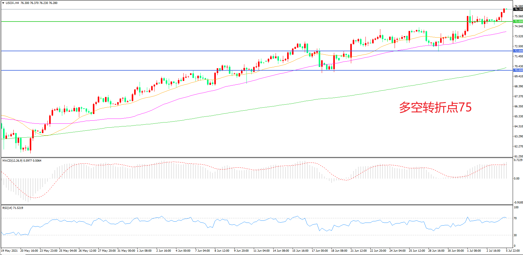 交易策略:在75.00之上看涨,目标78.00    80.00