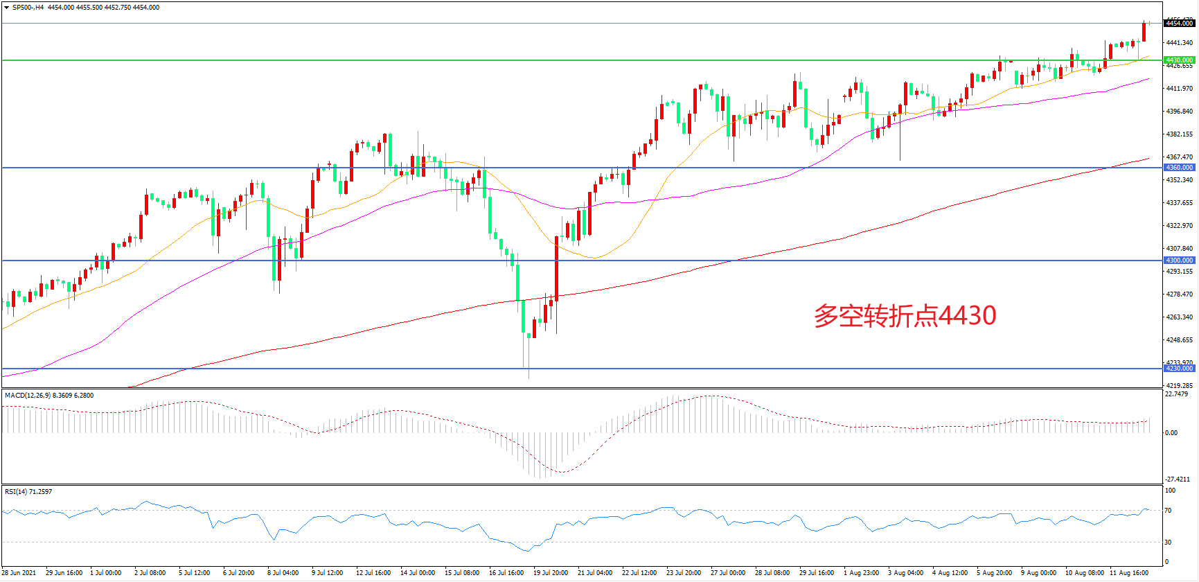 多空转折点:4430.00