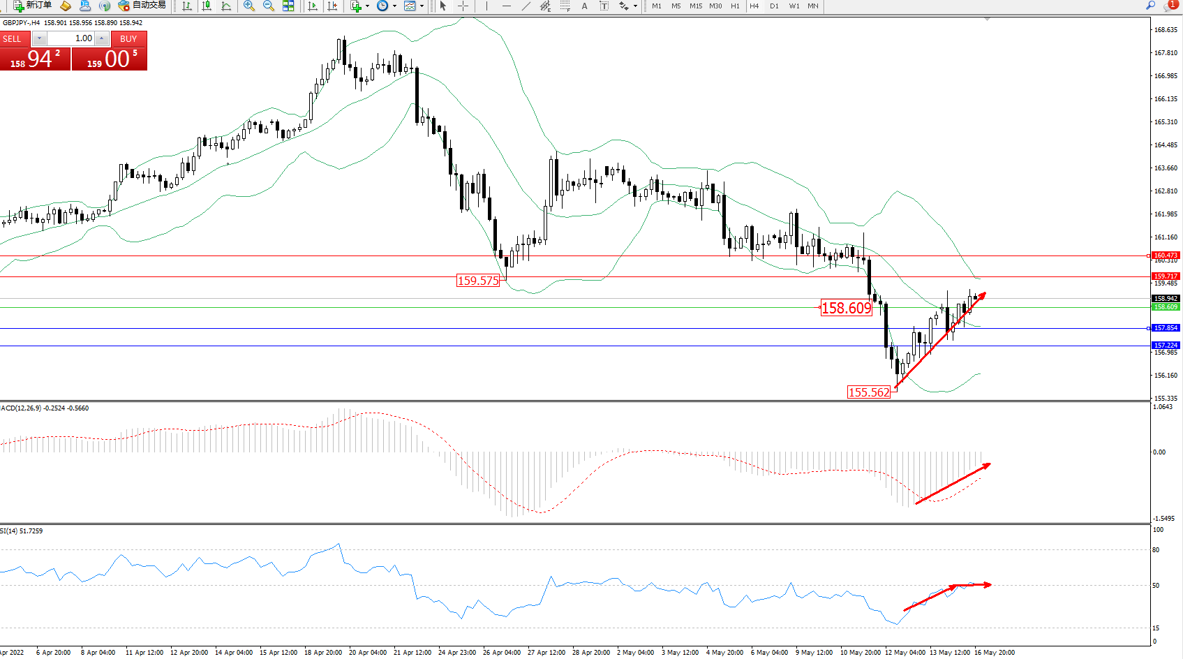 交易策略:158.609上方看涨,目标159.717、160.473