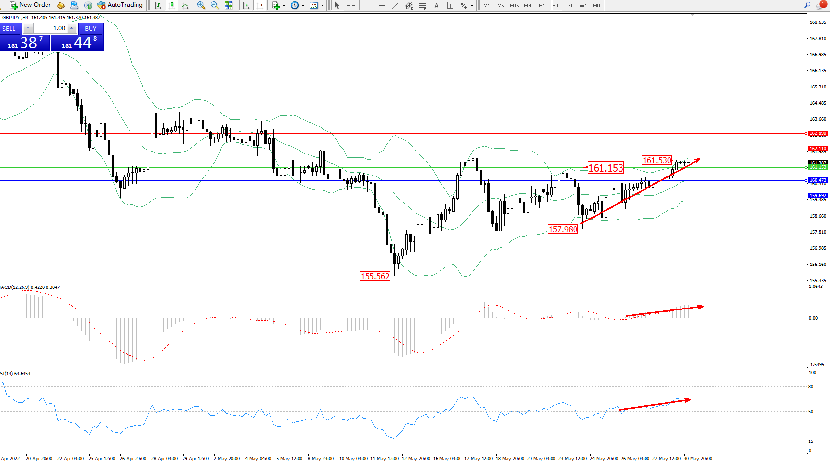 交易策略:161.153上方看涨,目标162.110、162.890