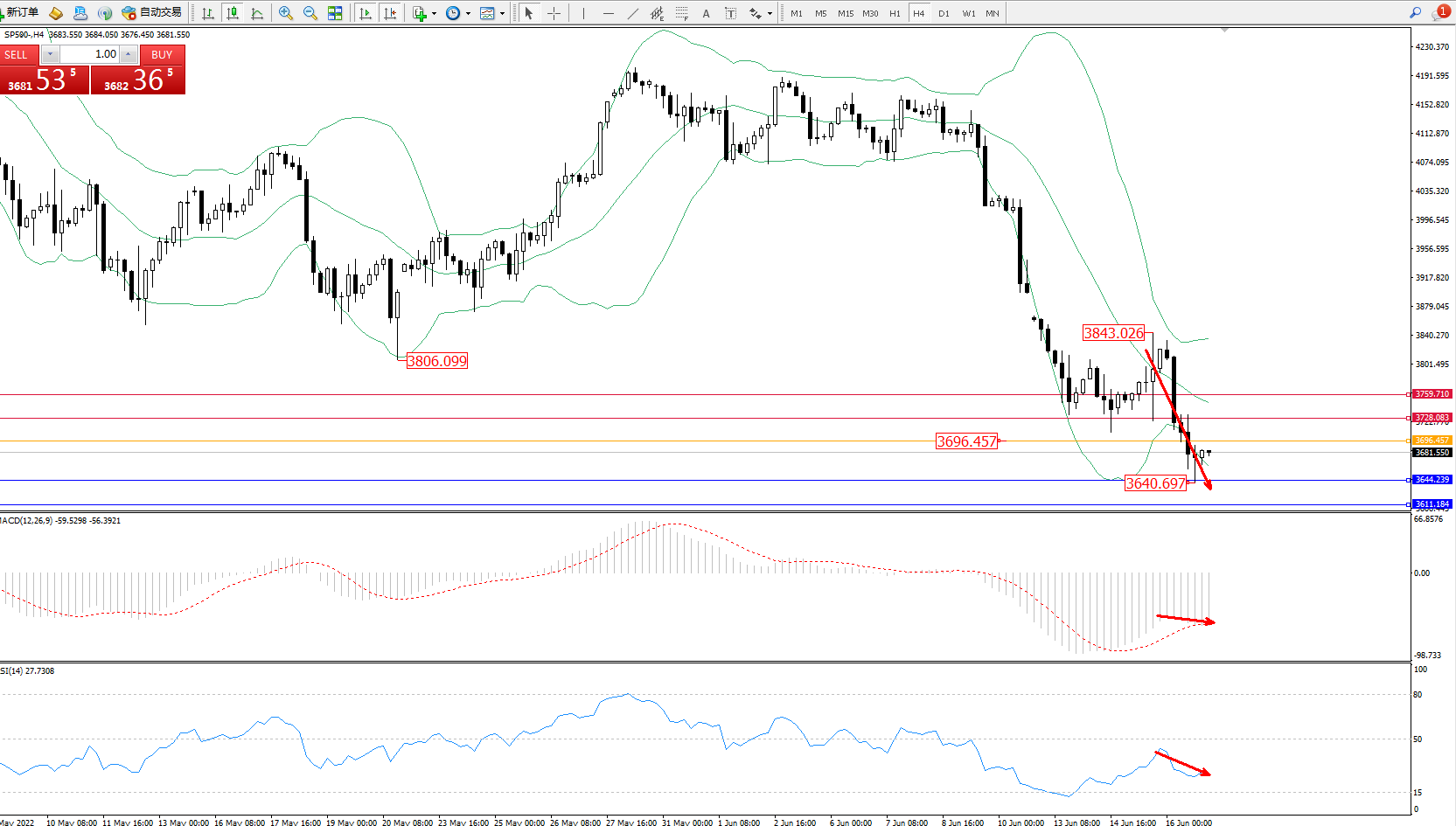 标普SP500——4小时K线图显示: