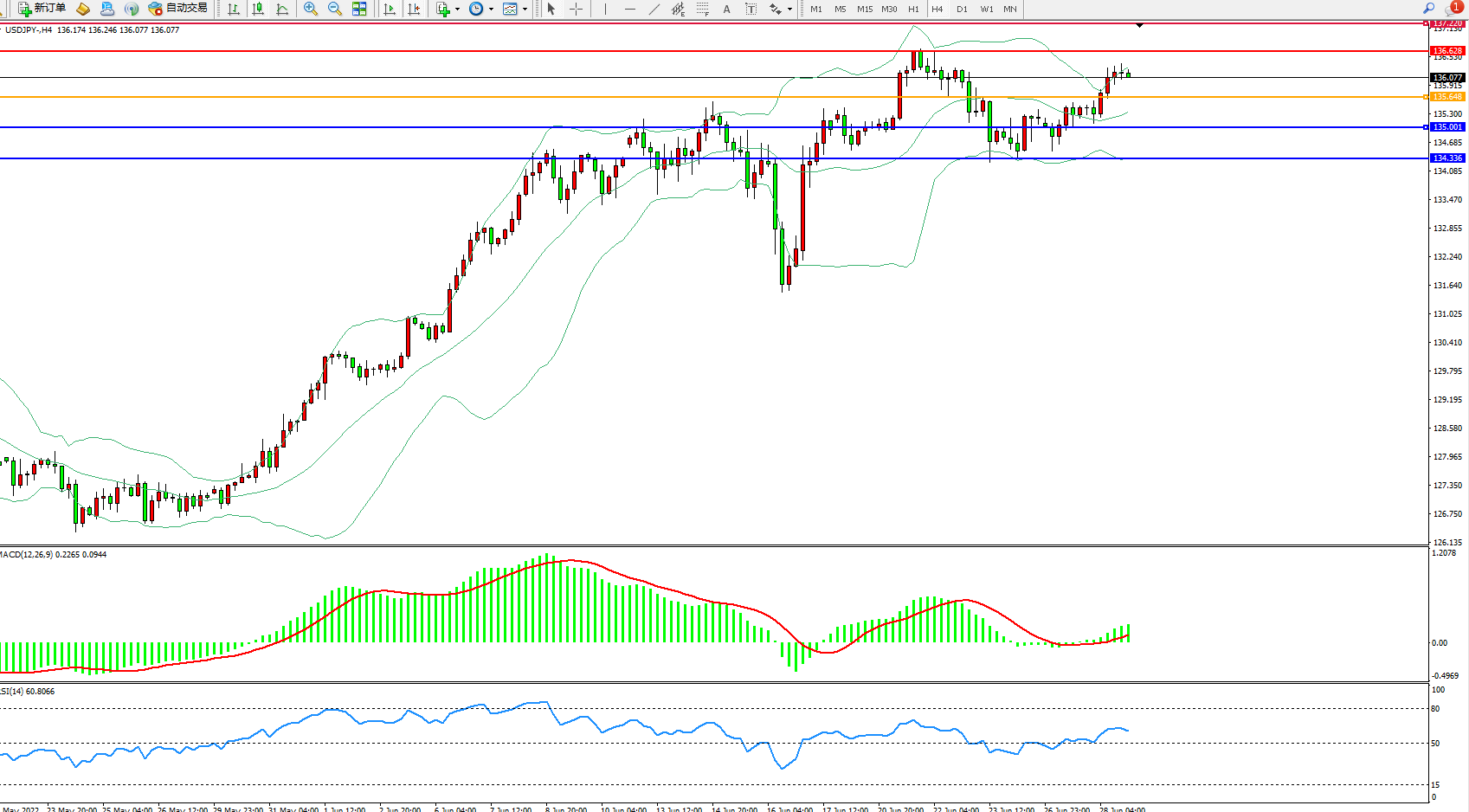 交易策略:135.648上方看涨,目标136.628、137.220