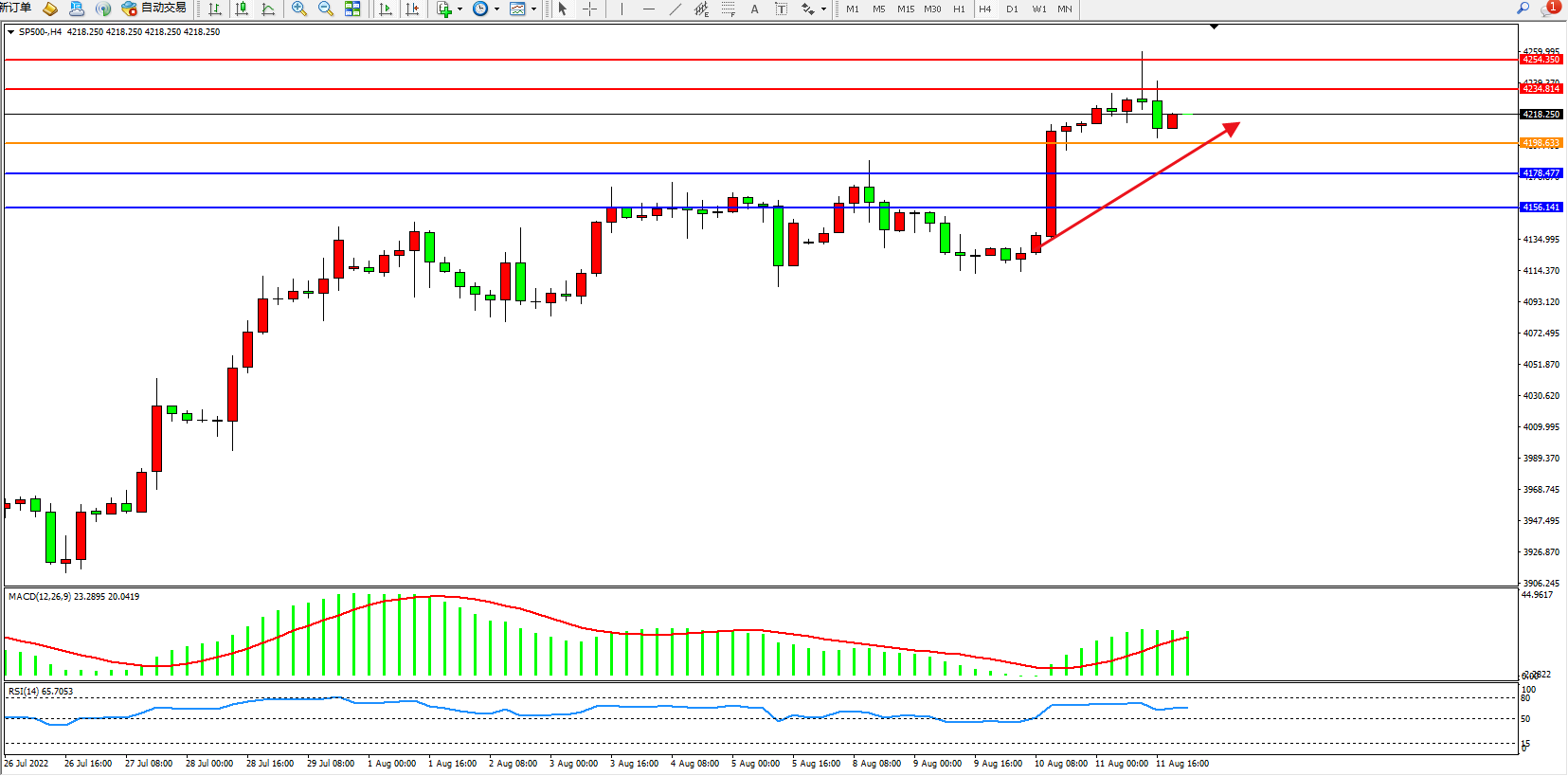 标普SP500——4小时K线图显示: