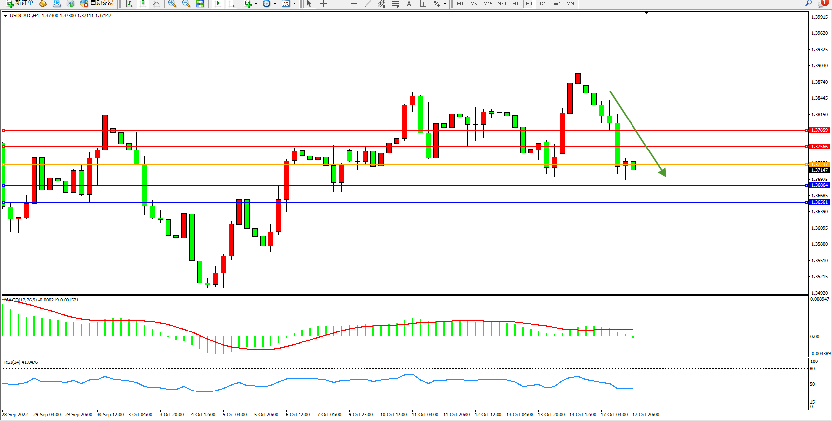 美元加元USDCAD——4小时K线图显示: