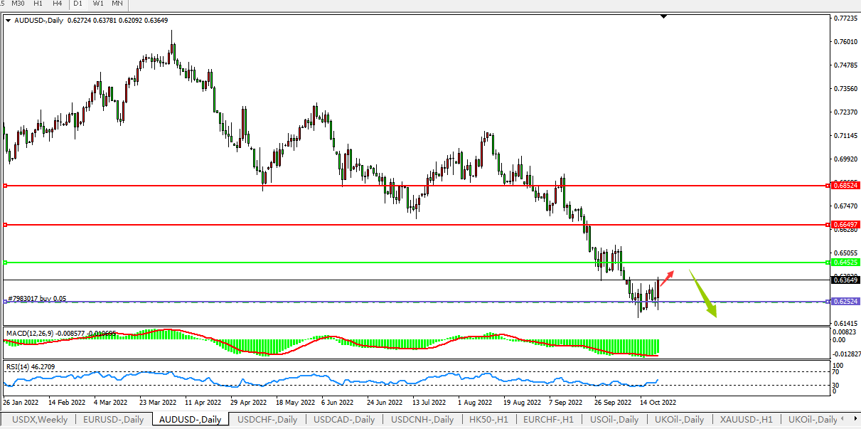 交易策略:0.6450下方看跌,目标0.6250、0.6050