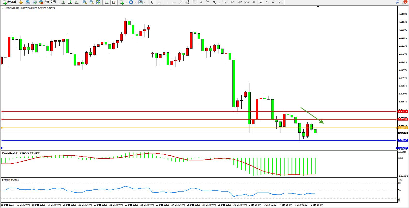 备选策略:6.88586上方看涨,目标6.89559、6.90479