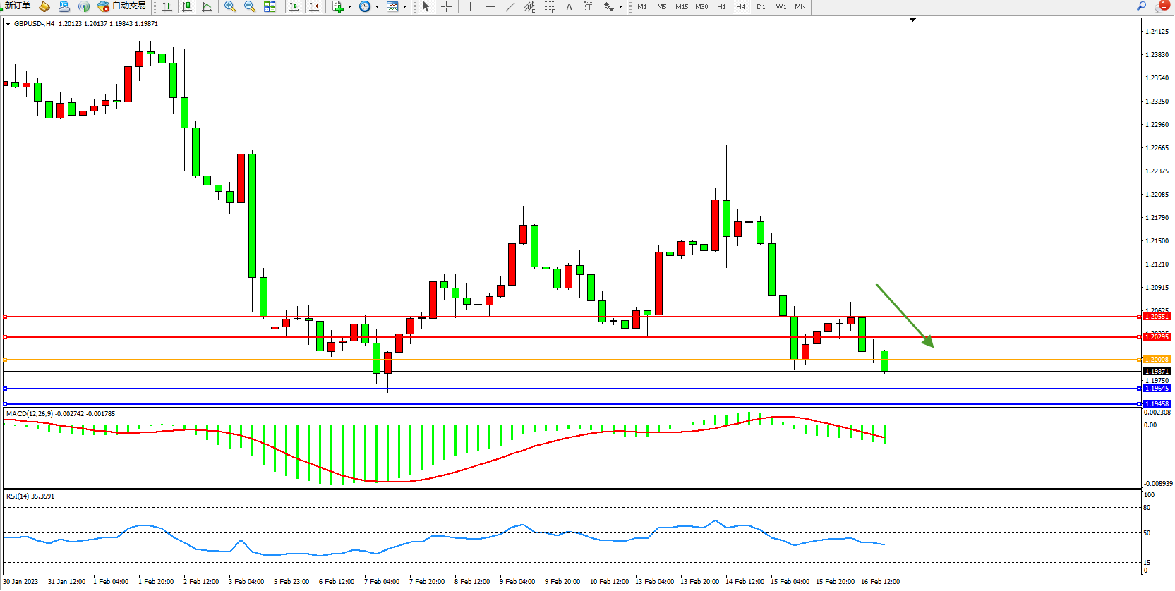 英镑美元GBPUSD ——4小时K线图显示: