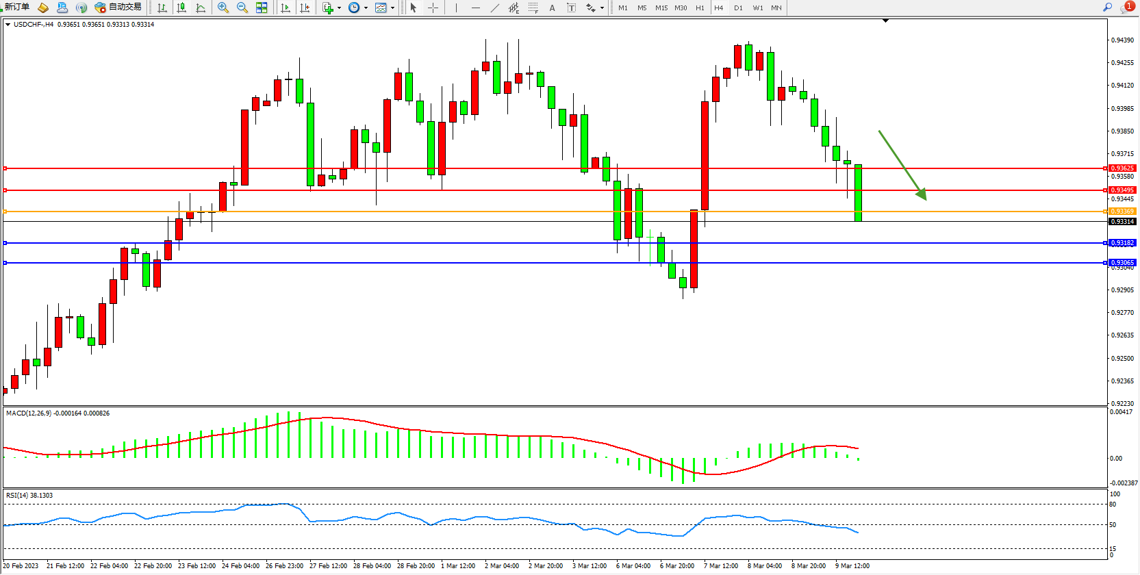 美元瑞郎USDCHF——4小时K线图显示: