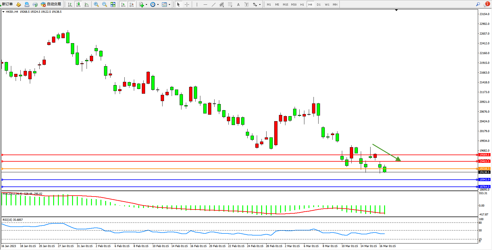 恒指HK50 4小时图