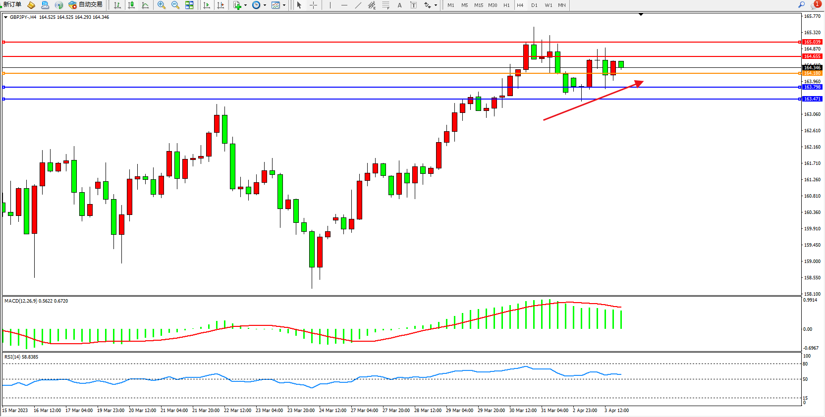 阻力位:164.655  165.039