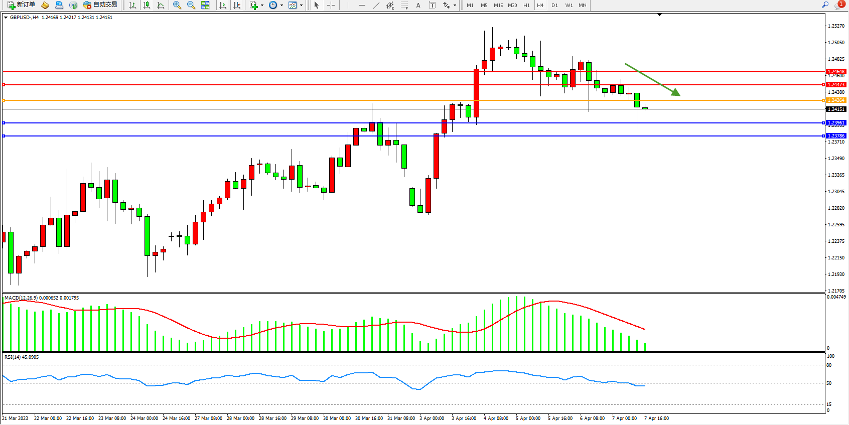 交易策略:1.34264下方看跌,目标1.23961  1.23786