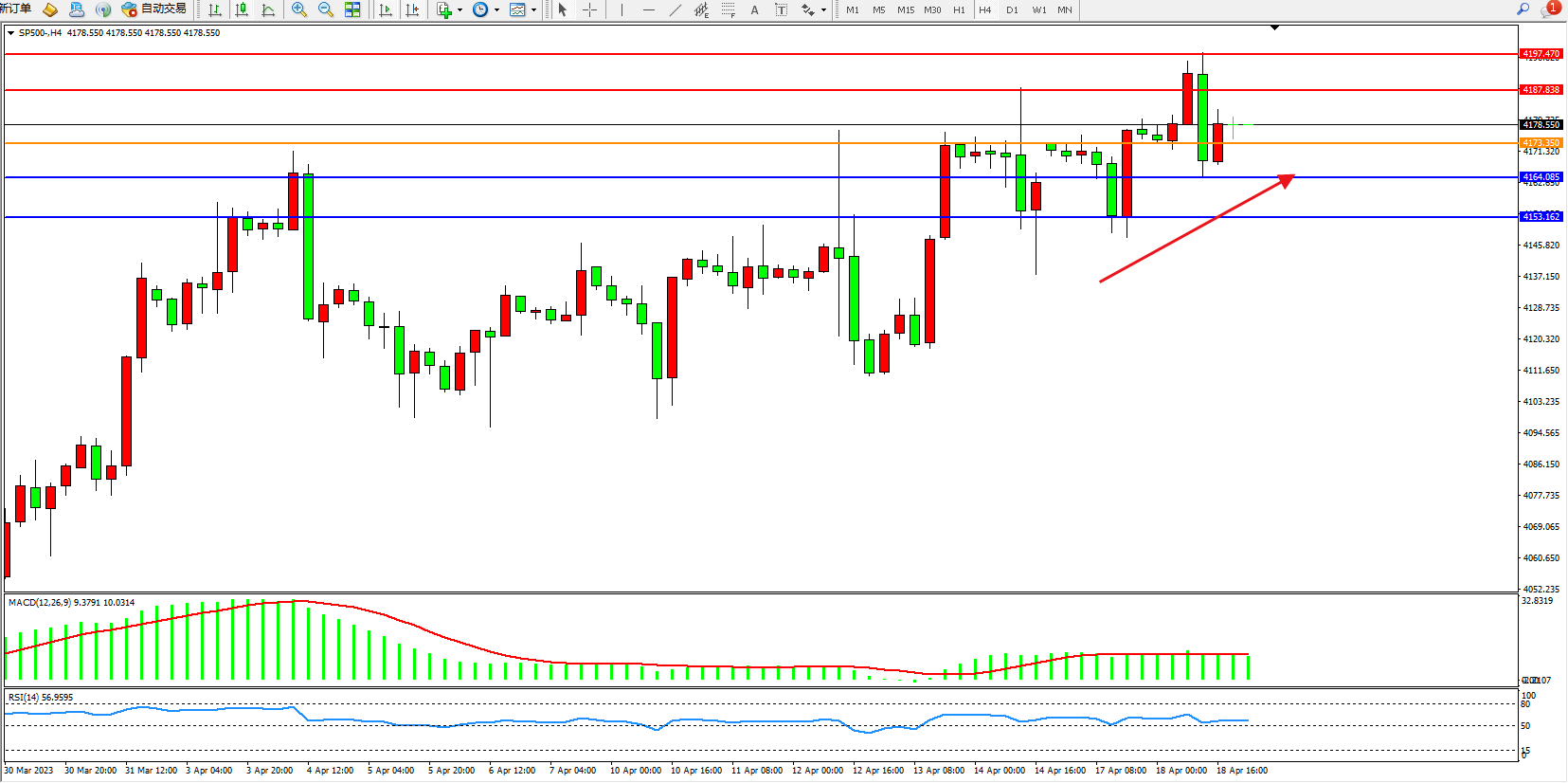 标普SP500——4小时K线图显示:
