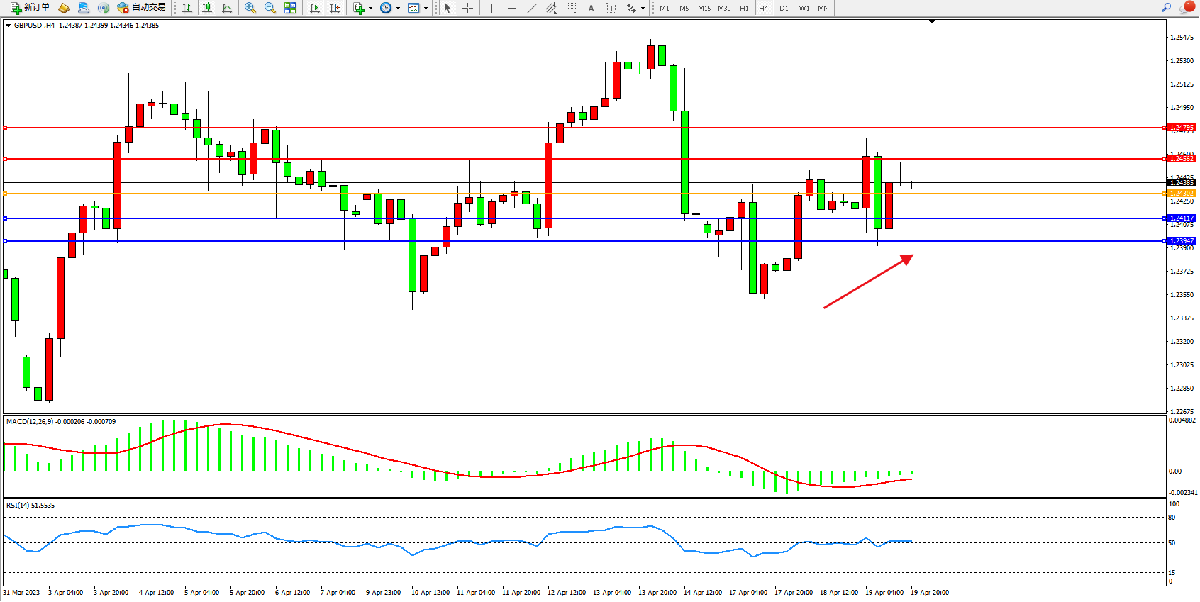 英镑美元GBPUSD ——4小时K线图显示: