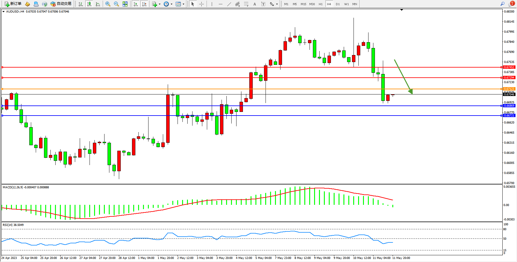 交易策略:0.67123下方看跌,目标0.66869 0.66721