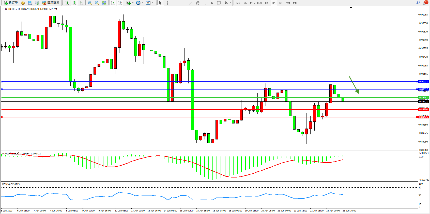 美元瑞郎USDCHF——4小时K线图显示: