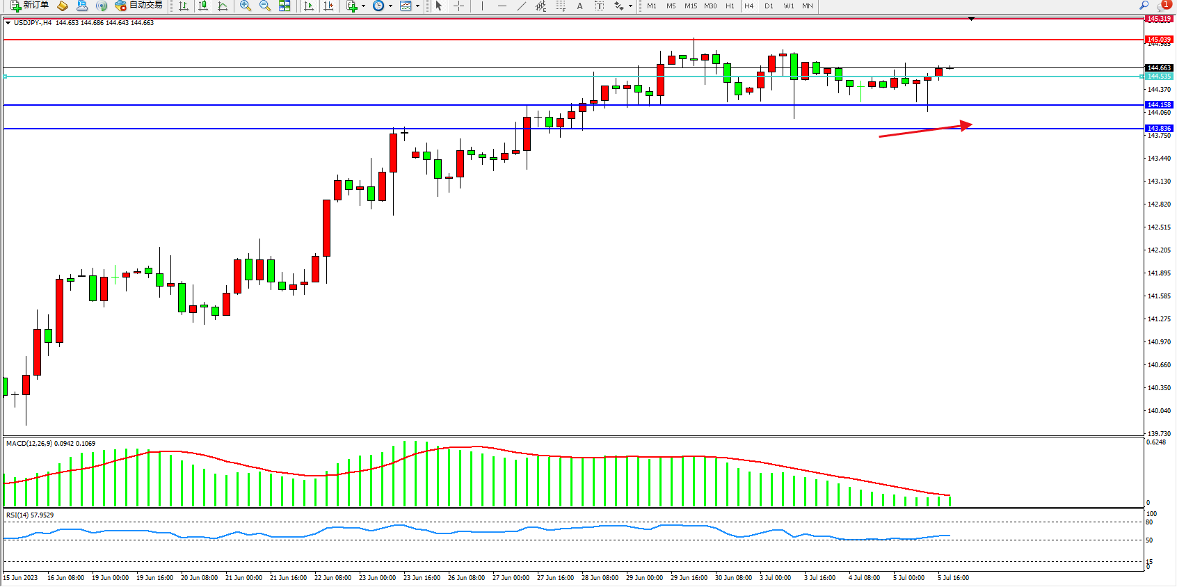 交易策略:144.535上方看涨,目标145.039 145.319