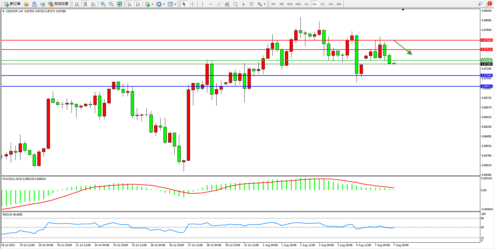 交易策略:0.87338下方看跌,目标0.87090 0.86913
