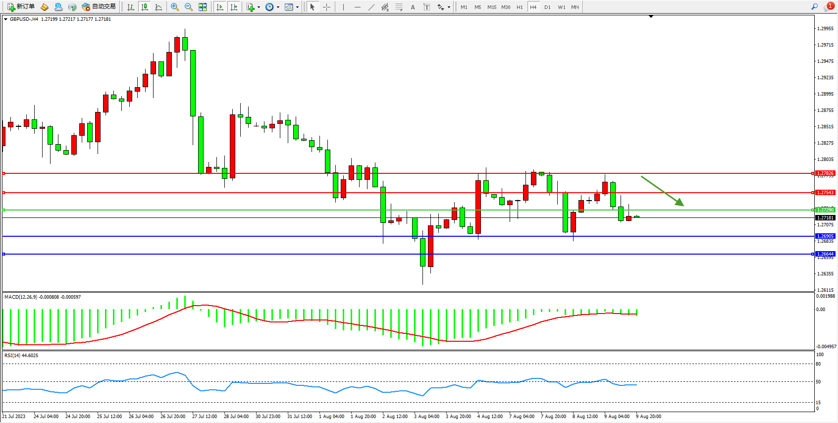 交易策略:1.27290下方看跌,目标1.26905 1.26644