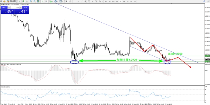 交易策略:倾向于逢高做空为主,日内短线1.2769附近考虑进场,目标1.2725;