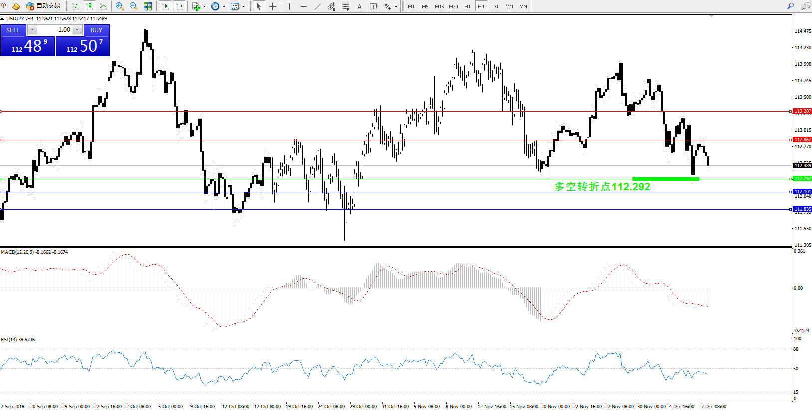 交易策略:112.292上方看涨,目标112.867、113.287