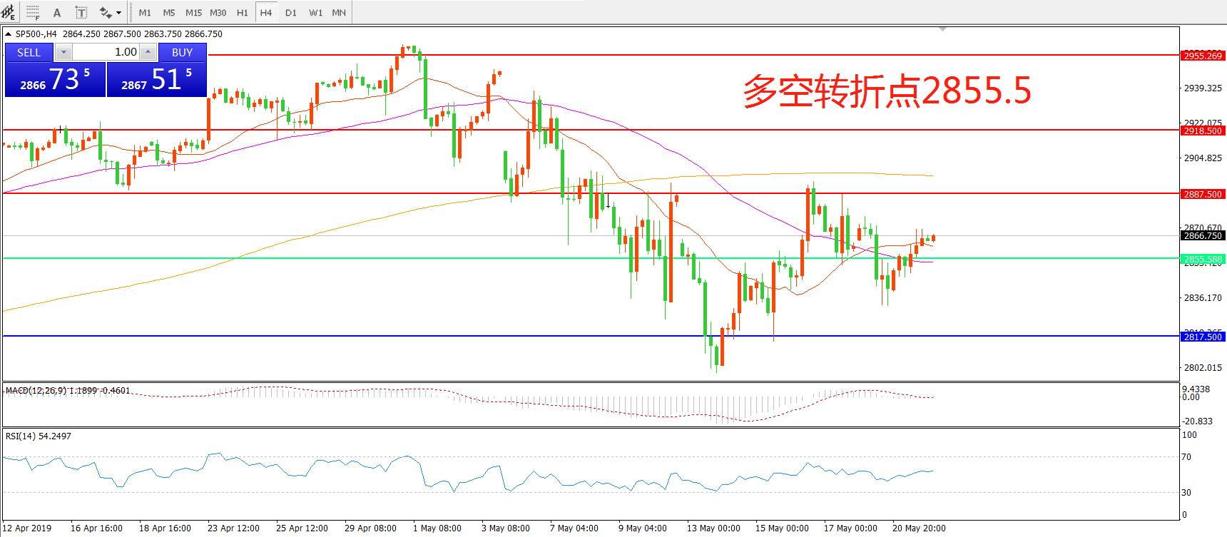 多空转折点:2855.50