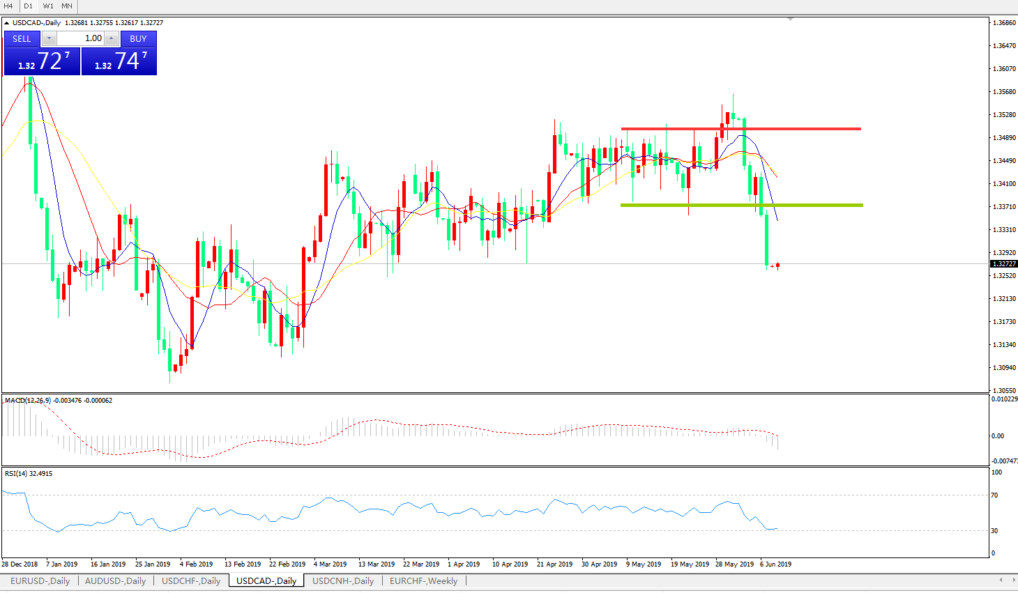 技术面简析:日线图均线呈有序空头排列,汇价大幅下跌MACD下穿0周且动能柱快速放量,RSI走低触及超卖区域,预计汇价大概率将延续弱势继续下行