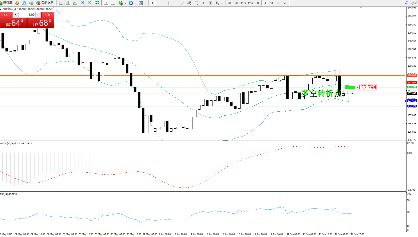 交易策略:137.794下方看跌,目标137.452、137.321