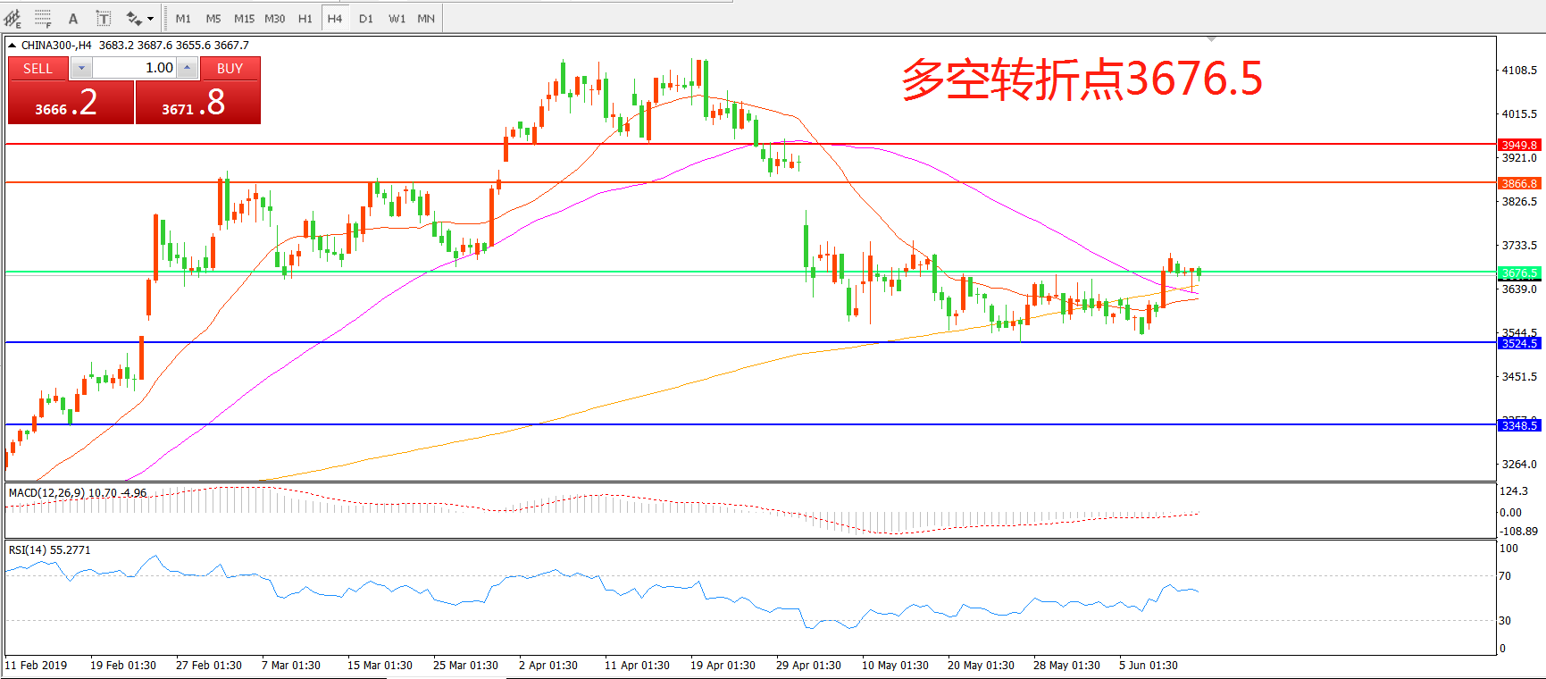 多空转折点:3676.50