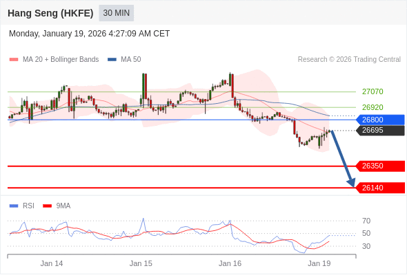 香港恒生指数期货 当日内: 短期关键阻力位在26800。