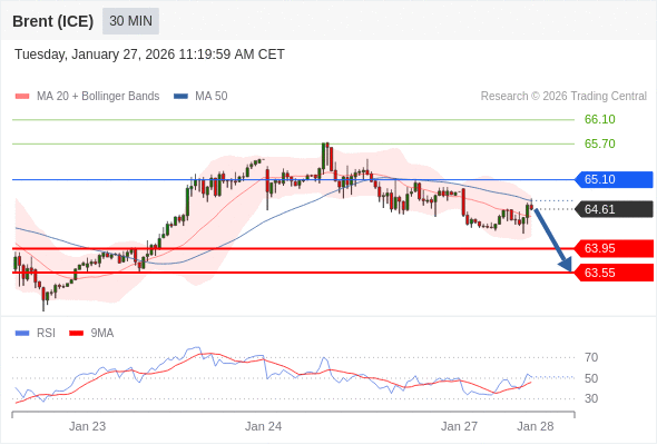 交易策略: 在 65.10 之下,看跌,目标价位为 63.95 ,然后为 63.55 。