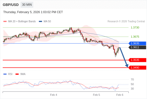 在 1.3635 之下,看跌,目标价位为 1.3535 ,然后为 1.3490 。