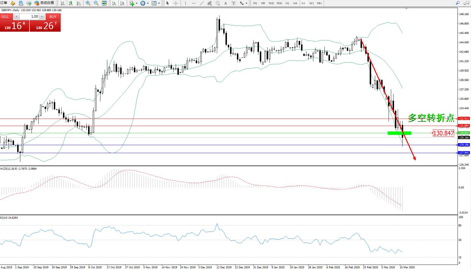 交易策略:130.847下方看跌,目标129.106127.945
