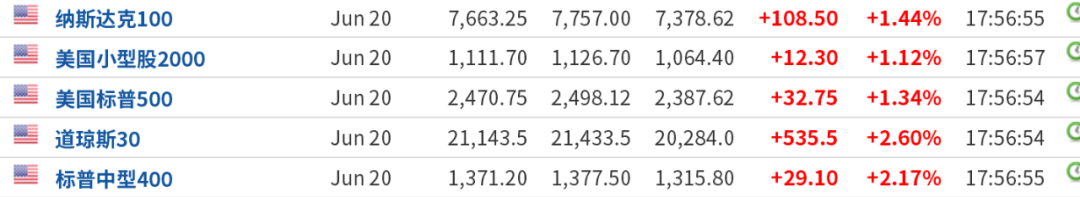 受此消息影响,美股三大股指期货午后均开始由跌转转涨,道指期货一度涨超4%以上。截至下午17点50分左右,美股期指涨幅进一步扩大,道指期货涨超2%,标普500、纳指期货涨超1.5%。