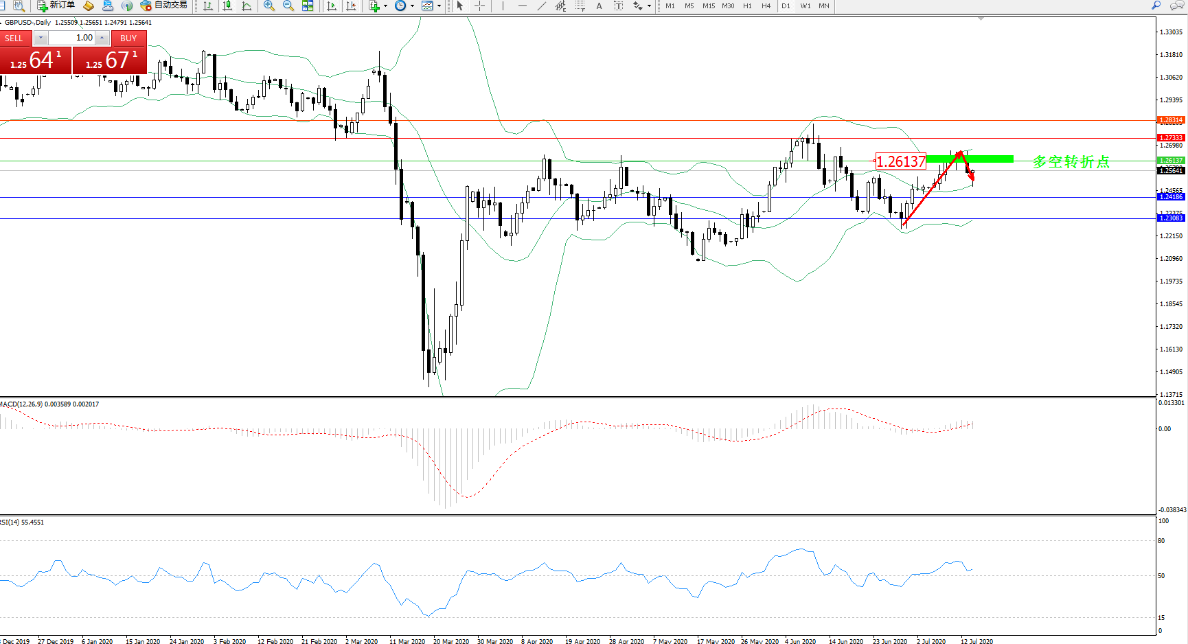 交易策略:1.26137下方看跌,目标1.24186、1.23083